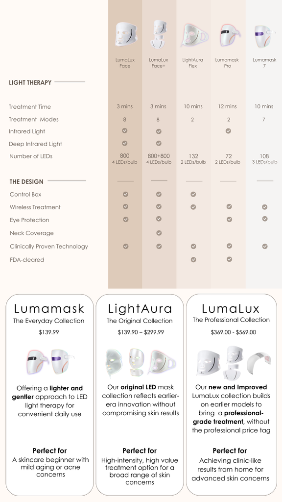 Lumamask 7 LED light therapy face mask showing mask for anti-aging and anti-acne