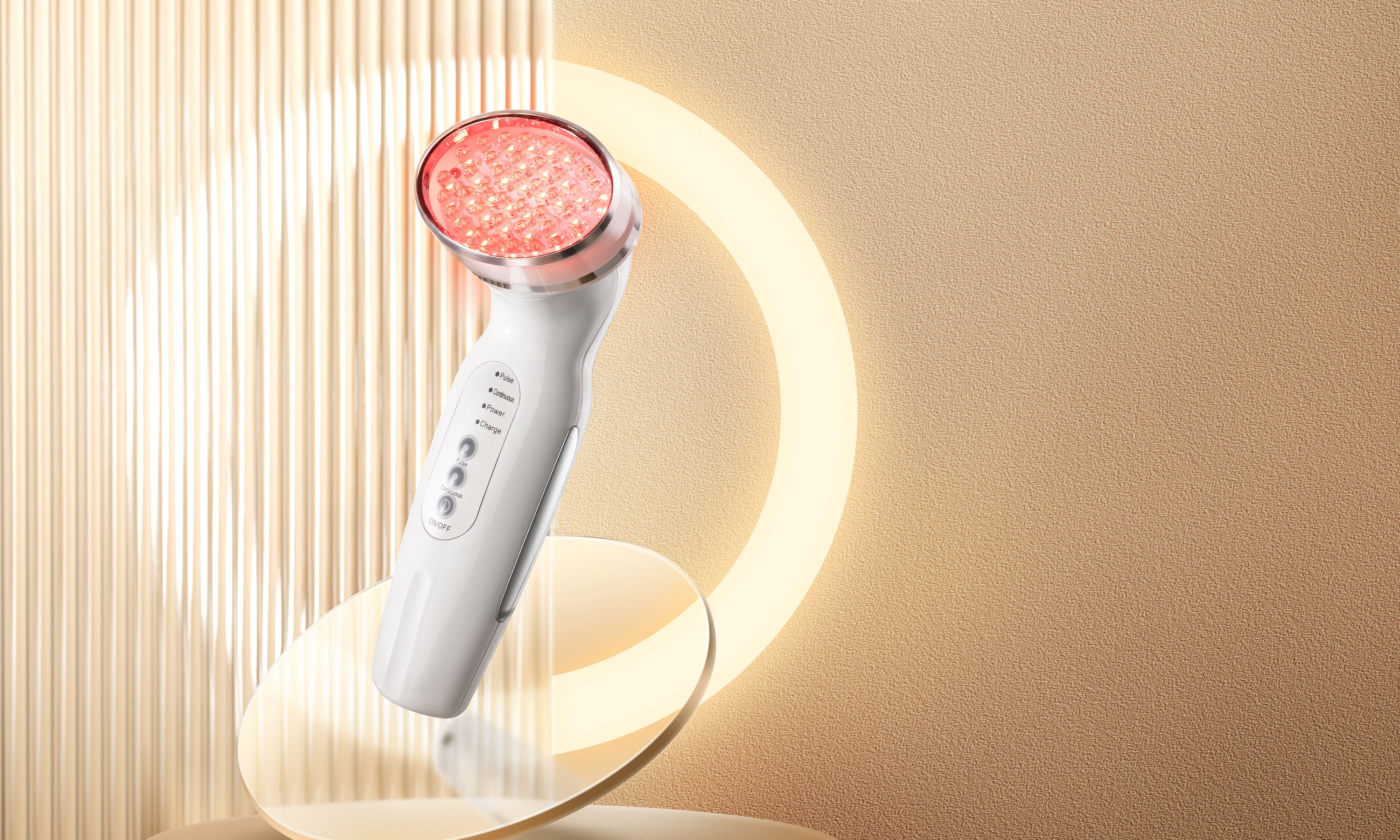 The ‘continuous’ mode delivers LED in a single wavelength, whereas the 'pulsed' mode is a flashing light setting. The pulsed light may deliver more intense results based on its ability to support the production of new protein more effectively. The continuous setting is still recommended where there is an increased risk of photosensitivity