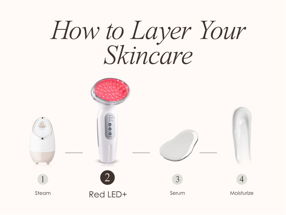 Apply your LED light therapy device to freshly cleansed face. Follow up with your favorite serum. We recommend a hyaluronic acid serum for the ultimate hydration boost. For stronger actives like retinol and vitamin C it's best not to apply direct after treatment to prevent irritation