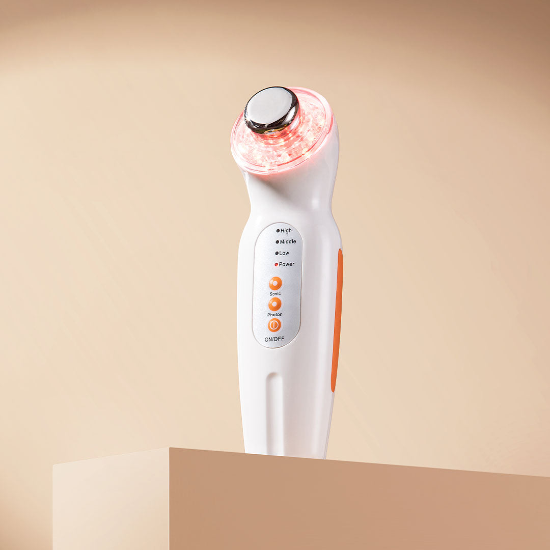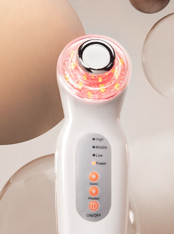 • Ultrasonic skin tightening + 3 LED light therapy colors